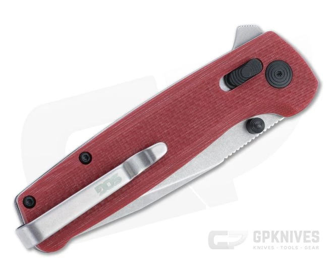 Looking for a simple, rugged and reliable folder for hiking, camping or daily carry. Look no further than the SOG Terminus XR. Minimal and straightforward in design and built tough with robust stainless liners, G10 scales and the self-adjusting XR locking mechanism, the Terminus XR is perfect for left- and right-handed users. A utilitarian D2 clip point blade rides smooth on a bearing pivot with multiple deployment options to meet your needs. This version comes with a stonewashed blade and Crimson Red G10 handle scales.