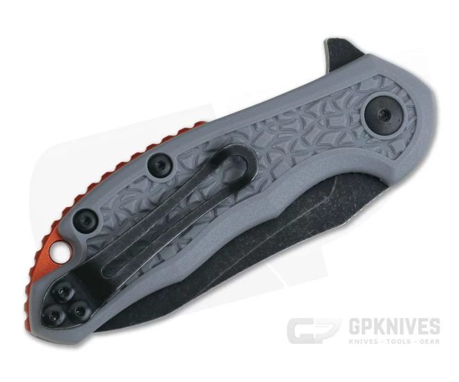 Handle:Â Lightweight fiberglass reinforced nylon or FRN is utilized for the handle scales which are textured for grip but smooth and contoured around the edges for comfort during use. The jewel orange anodized aluminum backspacer has jimping along the spine offering increased traction in the hand and a pop of color. Nested steel liners are skeletonized for further weight reduction and form a liner lock mechanism that provides smooth, reliable operation and rock solid lock-up of the knife. Black coated hardware rounds out the construction.