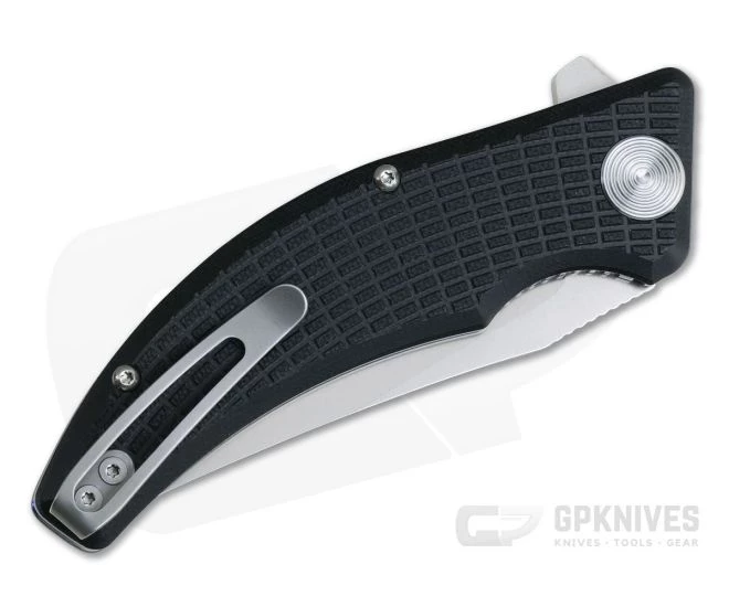 Blade:Â The D2 tool steel blade is capable of some serious cutting with a tall, +3.5 mm thick blade equipped with a high flat grind for solid slicing performance. The blade retains good thickness out to the tip of the clip point offering a solid tip for good piercing and detail work. It opens smoothly on a stainless steel ball bearing pivot via the index flipper tab. Jimping on the spine provides added traction for heavier cutting tasks. The blade is finished in a fine satin for stylish look.