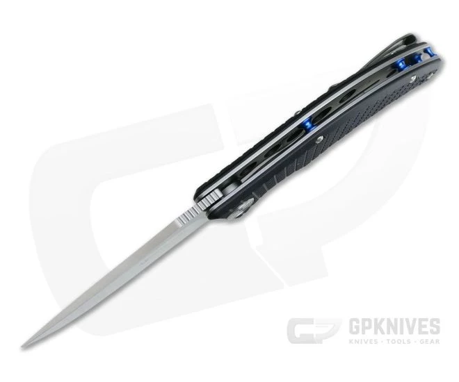Handle:Â Clean, sweeping lines of the G10 handles give the knife a stylish look while still offering a generous, ergonomic grip with enhanced traction from the milled texture. Providing access to the stainless steel liner lock an index finger cutout also adds security in use paired with a generous guard in the form of the flipper tab. Operation of the lock is simple and offers a robust and secure lockup. An open back construction with barrel spacers delivers a lightweight folder that is easy to maintain. This version is finished with satin hardware and blue anodized barrel spacers and an inline pin for lanyard attachment.