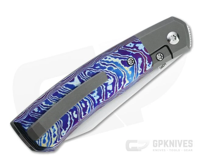 Handle:Â The sweeping handle consists of two thick dark bead blasted titanium liners with integral bolsters supporting stunning polished Mokuti handle scales for added heft and style. Neutral in design the handle is comfortable and ergonomic with a solid grip and a pommel swell for added security. The bolster lock is scalloped for good traction and equipped with a hardened steel lock face for smooth, reliable operation and solid lockup for the life of the knife.