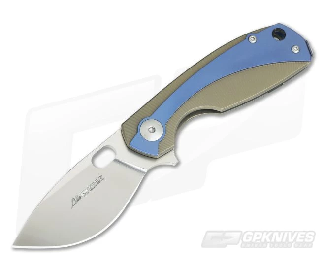 Designed by prolific Danish custom knife maker Jesper Voxnaes the Viper Lille is a classy, modern, compact every day carry gentleman’s knife that offers ‘big knife’ performance in a small package. The Lille exhibits top-notch fit and finish from Italian manufacturer Viper Tecnocut. The blade is a big belly drop point with serious slicing capacity especially with the flat ground M390 blade. This version comes with bronze anodize, milled titanium liners and blue anodized titanium overlay.