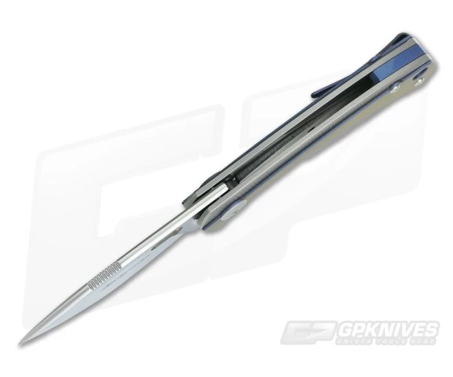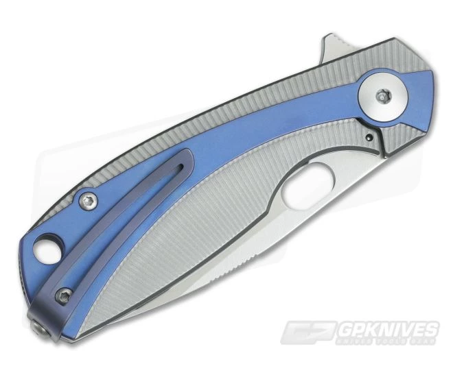 Handle:Â The handles are made from bead blast, CNC milled titanium that feels great in the hand. The sweeping titanium overlay adds a contoured feel to the handle as well as added visual interest. The titanium liner lock gives solid lock up and the small titanium back spacer is color matched to the overlay and deep carry titanium pocket clip. The pocket clip is attached to the end of the back spacer for enhanced discretion in carry and a generous hole makes for easy lanyard attachment.