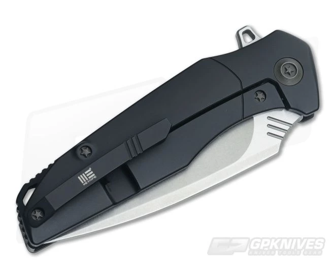The Handle:Â A fully tumbled black titanium frame lock construction delivers solid performance and durability while the carbon fiber inlay reduces weight and gives the 707 a classy look. The inlay creates a bolster like section of titanium on the display side enhancing the elegant look. The handle is fully contoured for comfort in the hand and features a titanium backspacer and 3D machined titanium pocket clip set up for tip-up, right hand carry only. Construction is completed with proprietary anodized titanium Star hardware.