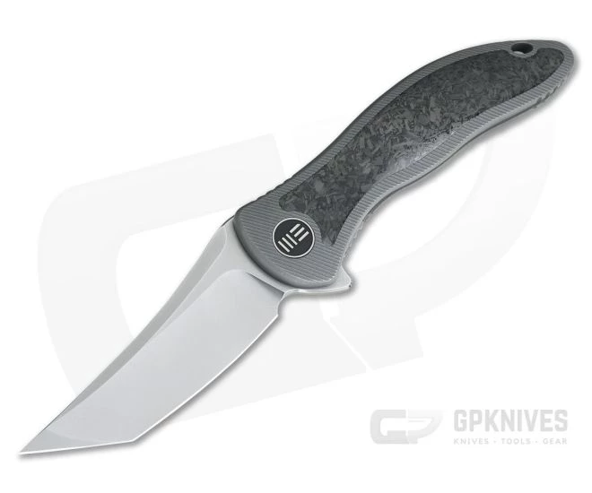 Designed by custom knife maker Jim O’Young and winner of the Blade Show 1999 “Most Innovative American Design” award the Synergy has been re-released in collaboration with WE Knives for its 20th Anniversary in the Synergy2 model. This version comes with gray, integral titanium handles with shredded carbon fiber inlays and a polished bead blast, compound ground, Tanto blade made from Bohler M390.