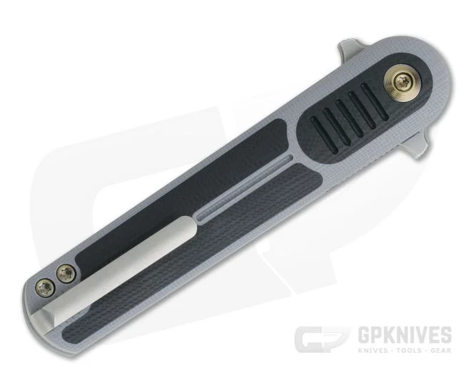 Is it a flipper? Is it a dagger? The Justin Lundquist (Kizer Feist) designed Angst from WE Knives is a bit of both. When open this knife is a single edge dagger to the core, with symmetrically ground blade, dual guards and contoured handle. Making it more EDC friendly, the Angst folds into a slim, sub-4 inch package that weighs less than two ounces! This version comes with a Stonewashed S35VN blade, with Gray G10 handle scales, black G10 handle inlays and black G10 thumb inlays.
