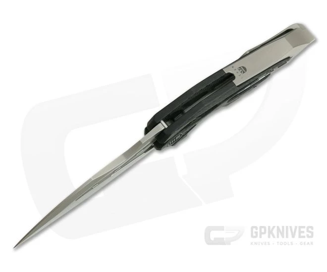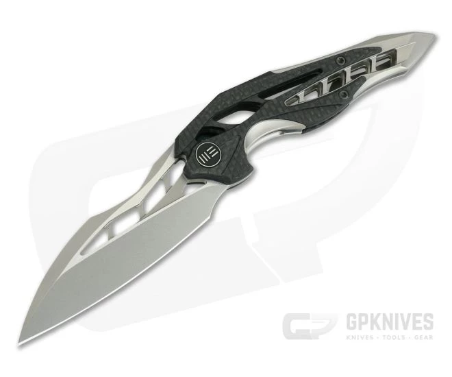 The model 906CF Arrakis was the predecessor to the Isham Eschaton design and though they were not produced chronologically you can easily see the similarities in design. This eclectic design produced by WE Knife Company is a limited edition production designed by Elijah Isham that is out of this world. The Arrakis utilizes the same unique design to creates an integral folder that delivers a full-size titanium construction in a sub 4 oz. package. This version of the futuristic folder has a stonewashed finish Bohler M390 blade and Carbon Fiber overlay on Gray 6AL4V Titanium scales. This highly stylized yet functional design is limited in production making it ideal for collectors and users alike.