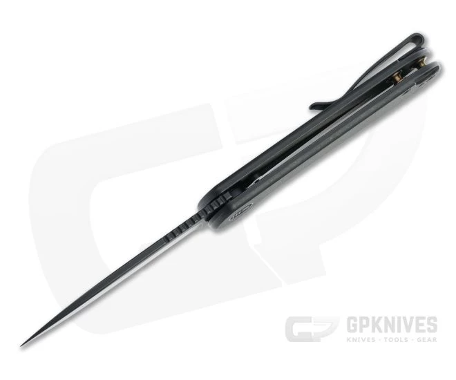 Handle:Â Chamfered black stonewashed titanium slabs pair with barrel spacers in an easy to maintain open back construction. The steel insert equipped integral frame lock offers smooth operation and solid lockup for secure use. A neutral, ergonomic design affords multiple grip options for added utility.
