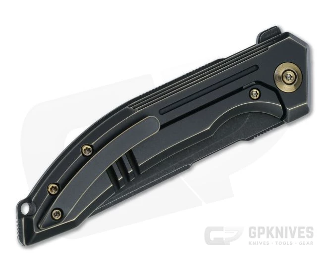 Handle:Â Thick, chamfered titanium slabs and proud back spacer form the handle with strategic jimping for traction and fluted milling for an industrial look. The neutral design is comfortable in multiple grips with a subtle choil for added safety. A steel lock face equipped frame lock delivers seamless operation and solid lockup for safe use.