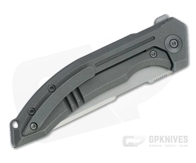 Handle:Â Thick, chamfered titanium slabs and proud back spacer form the handle with strategic jimping for traction and fluted milling for an industrial look. The neutral design is comfortable in multiple grips with a subtle choil for added safety. A steel lock face equipped frame lock delivers seamless operation and solid lockup for safe use.