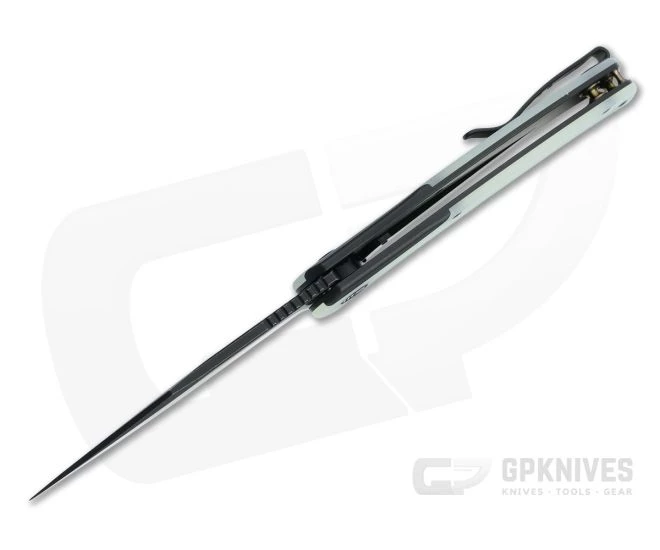 Offering high-style tactical performance, the WE Knives Snick sports a broad Bowie style clip point blade and a nested frame lock construction for a clean, modern look with a comfortable grip and top-end operation and capability. This version comes with a black stonewashed CPM-20CV blade, matching titanium handles and natural translucent βJadeβ green G10 inlays.