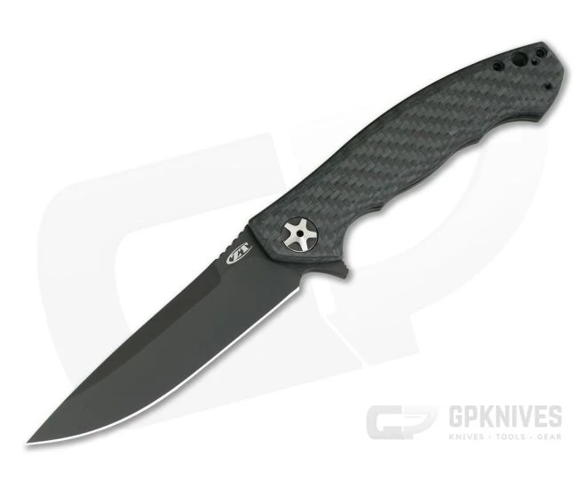 The Zero Tolerance 0452GL Flipper is a new Sprint Run edition of the ever-popular Sinkevich designed carbon fiber model. This Limited version looks good in the light and dark, ZT style. First, the handle. It consists of a modern Glow Carbon Fiber (Light Activated) show scale combined with a BlackOut DLC finished titanium frame lock side. Super tough USA CPM S35Vn stainless steel was chosen for this quick run and given an equally BlackOut DLC finish.
