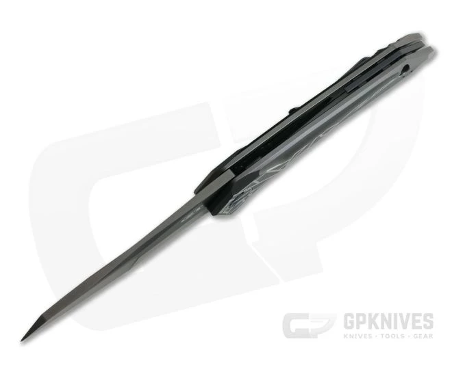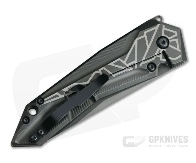 Handle:Â Fully 3D machined titanium is ergonomic enough for everyday use with futuristic machined grooves and an engraved geometric pattern that contrasts with the all black DLC coating. The integral titanium frame lock mechanism with hardened steel lock face insert provides smooth operation and rock solid lockup for the life of the knife. A black, hard anodized aluminum back spacer rounds out the construction.