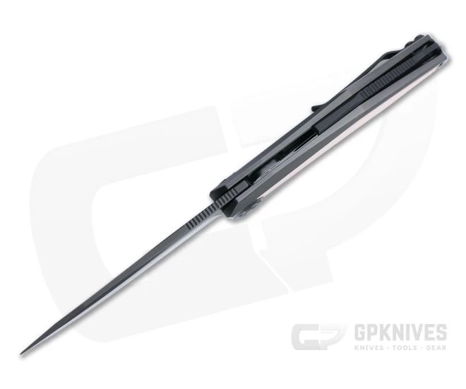 Handle: The contoured titanium handle features internal milling for weight reduction and balance with a matching DLC finish and black hardware for low profile carry and use. Strategic jimping delivers good traction for a secure grip with deep chamfers for comfort. The front features a handsome raw copper inlay that will develop a unique patina over time. An integral frame lock comes equipped with a hardened steel insert for smooth operation and solid lockup for the life of the knife.